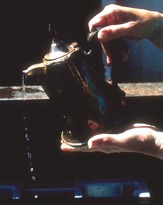 Jennifer holding a silver chocolate pot from the first class dining room.